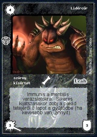 Kiadás: Isteni szövetség, Túlélők Földje, Védnök 2025 Gyakoriság: nem gyakori Lapszín (isten): Leah Típus: szörny Altípus: kísértet Szöveg: Immunis a mentális varázslatokra. Sikeres kijátszásakor dobj a paklid tetejéről 8 lapot a gyűjtődbe (ha kevesebb van, annyit). Illusztráció: Szász Gábor